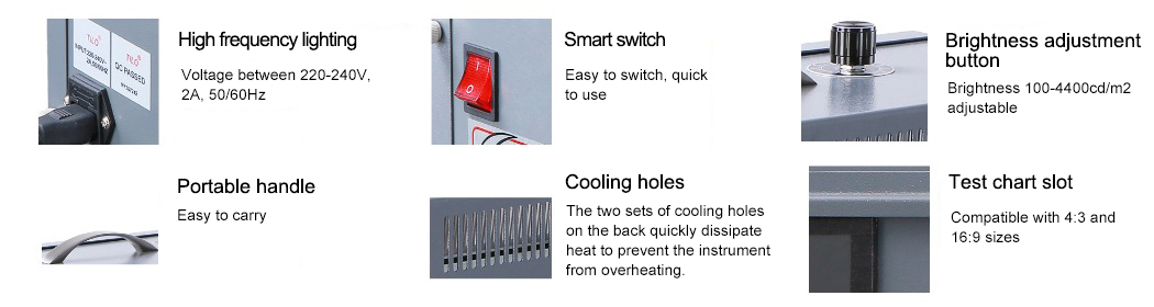 Transmission light box provides a special light source for camera test. It can meet the requirements: High-level lighting homogeneity and Continuous Light Intensity Adjustment, etc.